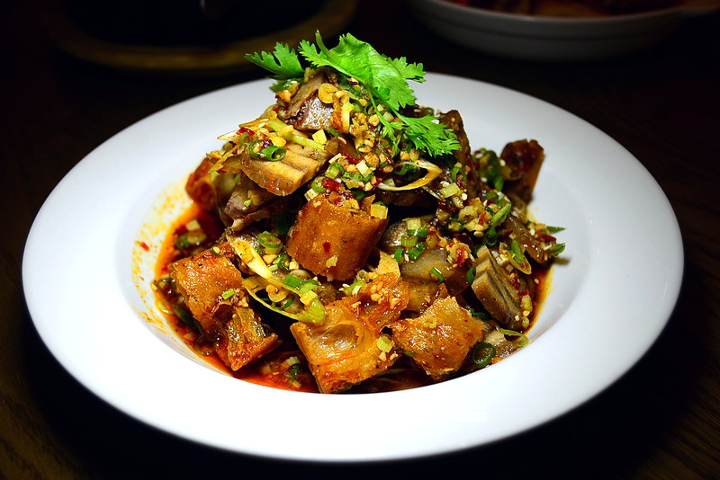 ▼既然是四川口味,當然就是要辣啊! 調味裡有大量的切碎的辣椒、紅油,胡椒等等,吃起來的辣度以不太吃辣的安魯魯來說,算是有點過辣了,但對於老佛爺來說,這只是開胃的辣度,這一盤的辣吃起來比較偏辣椒的辣味,但也綜合了胡椒的辣並帶一點蔥蒜的味道,另外灑上了芝麻粒,吃起來更添加了香氣。老油條入這道菜更增加了飽足感和脆脆的口感,還好老油條沒有吸上太多的辣味,所以吃起來夠味但不會辣到吃不下!
