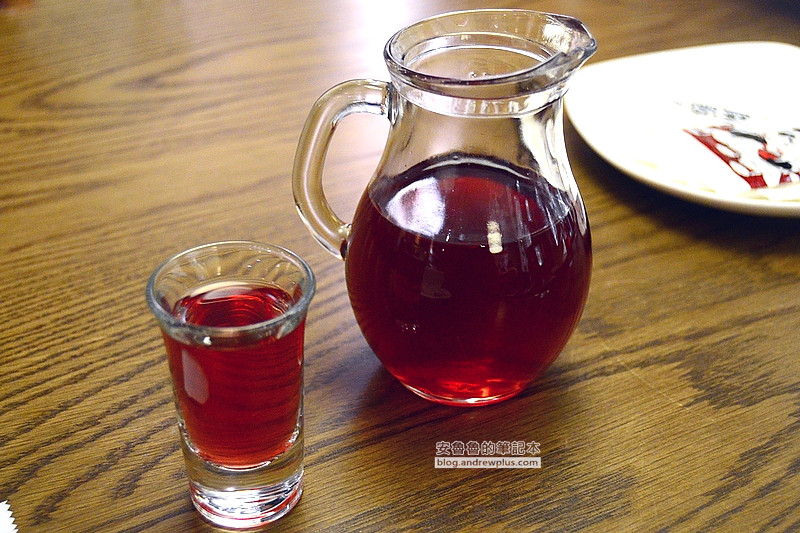 ▼服務人員親切的微笑帶我們到預定的位置,桌上已經準備好蔓越莓果醋在等我們喝了!