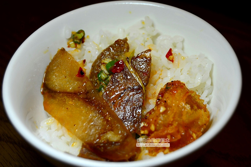 ▼牛筋、腱子肉都切的薄薄的一大片,把白飯包起來一起塞進嘴裡,香香辣辣又有扎實的口感,咀嚼起來真是過癮