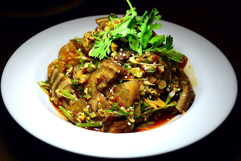 第一次吃到夫妻肺片加入油條的,切片的大小也走大氣路線,裡面有牛肚、牛筋、腱子肉等等,夫妻肺片簡單來說就是辣味的牛雜,而且都要切的大薄片的,吃起來才過癮! 至於為什麼會叫做夫妻肺片,簡單介紹: 起源於四川一對夫妻賣牛雜切片,本來是叫做 燴片或廢片,但是有客人覺得太好吃了,就送上匾額,又因原本的名字不太好聽,匾額上就改成了 "夫妻肺片"