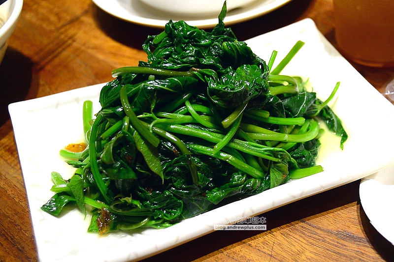 地瓜葉的份量還真不少,一般小吃店的地瓜葉會淋上滷肉汁,雖然地瓜葉看起來油油亮亮又香,但無形之中也吃進了很多油,雙月的地瓜葉相當清爽,無過多調味卻也沒有菜葉的生味和澀味,拌入了少量油蔥,上桌不用再攪拌就能直接吃!