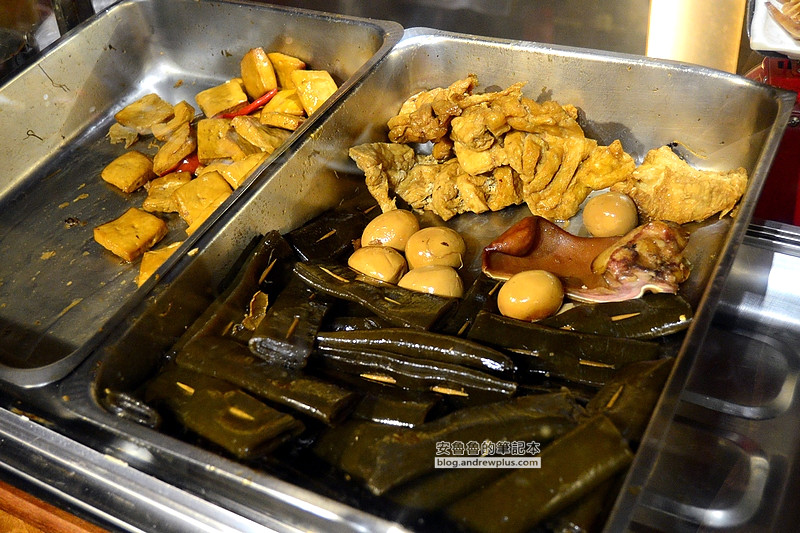 裡面有豬頭皮、海帶、豆干和花干,在淋上醬油膏,這些小菜是用獨門調配的中藥下去滷的,吃起來有特別的香氣,而且也不會口味過重過鹹~