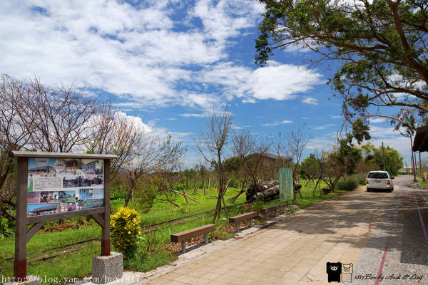 車子開進天送埤車站前的道路,雖是平日,但來此遊玩的遊客也不在少數,