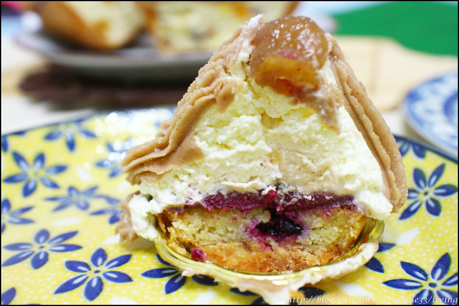 來用剖面圖為大家揭密:珠寶盒使用沙巴東栗子泥,所以香而不膩,底下包覆了無糖鮮奶油跟義式蛋白霜,還有神來一筆的黑醋栗果泥和香酥塔皮,讓這份蒙布朗在味道的組合和口感的層次上更豐富而多變化,跟我一樣曾經對蒙布朗有陰影的人務必要來試試看