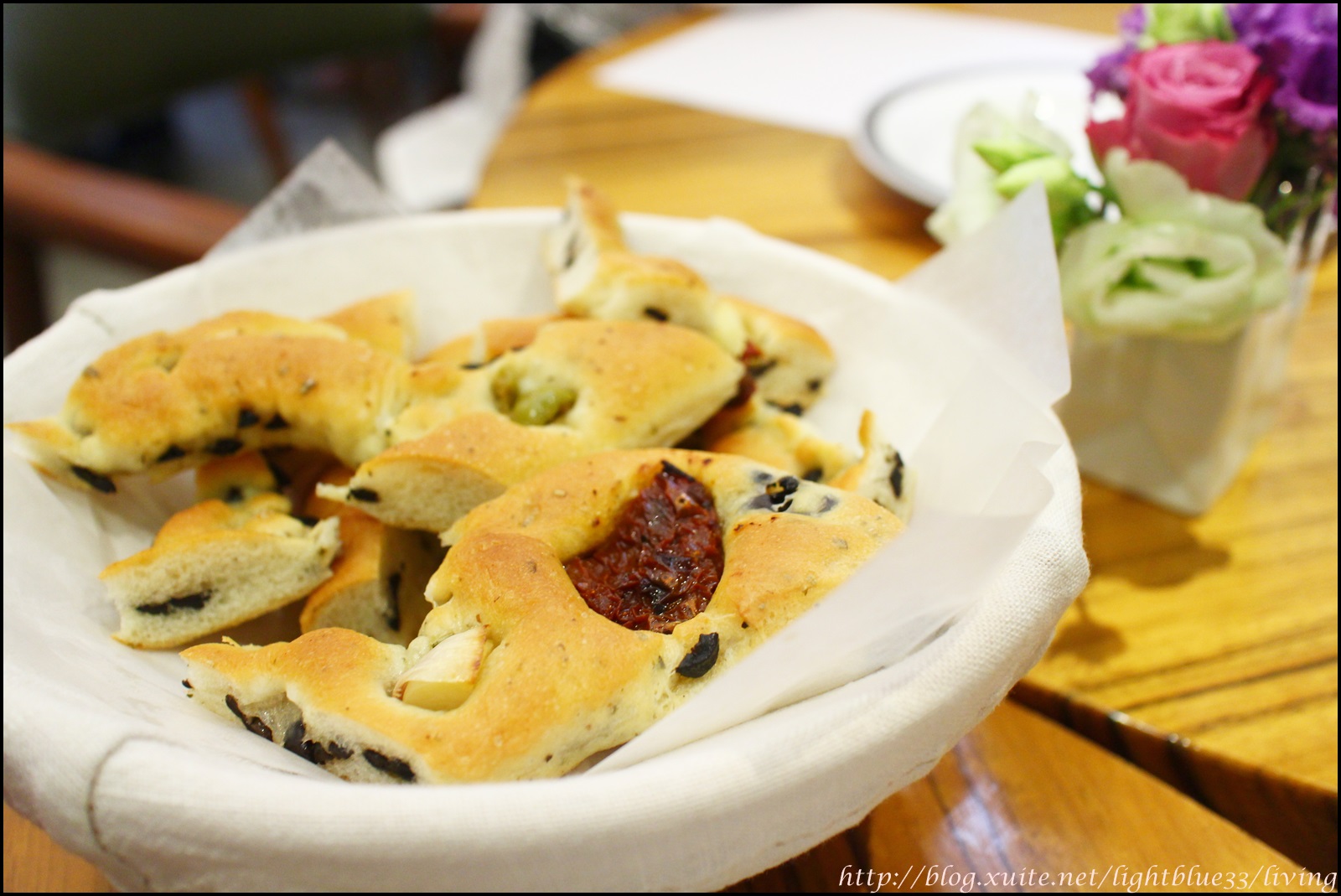 這是讓我很驚豔的鹹麵包「面具」,由黑、綠雙色橄欖與大器切塊的蒜頭、蕃茄、橄欖油製作,麵包吃起來是剛剛好的咬勁和鹹度,原來全素麵包也可以這麼美味!