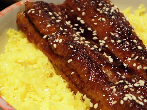 醬烤的厚片鰻魚搭上兩旁的蛋末
