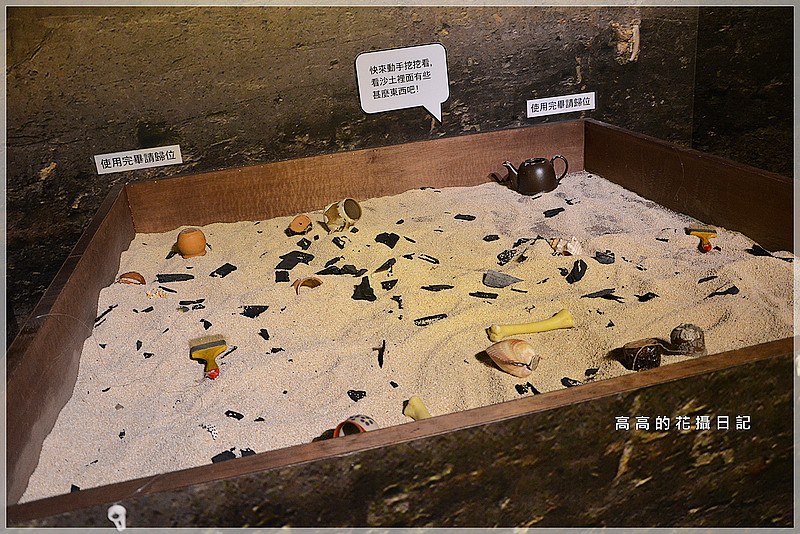 在這裡並設置有讓參觀者可以動手體驗挖掘文物的沙坑,