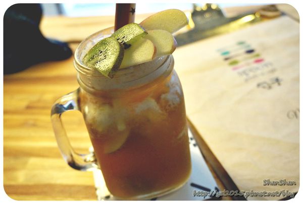 新鮮水果泡的綜合水果茶,水果丁相當多!店員很推薦的一款。