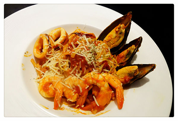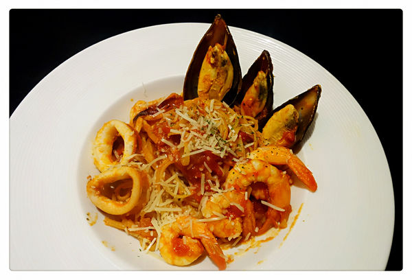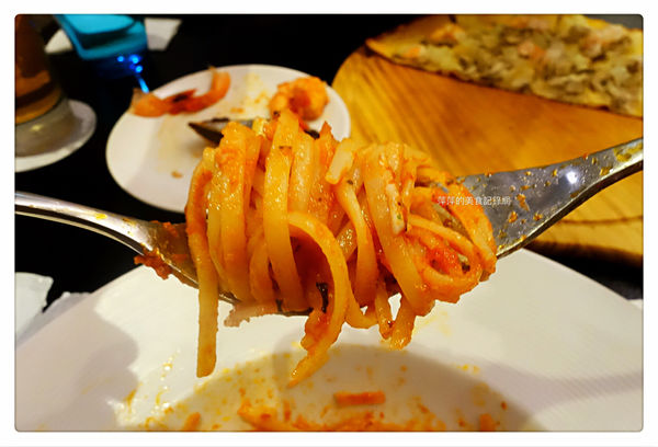 麵條幾乎被海鮮及現刨起司給覆蓋了
