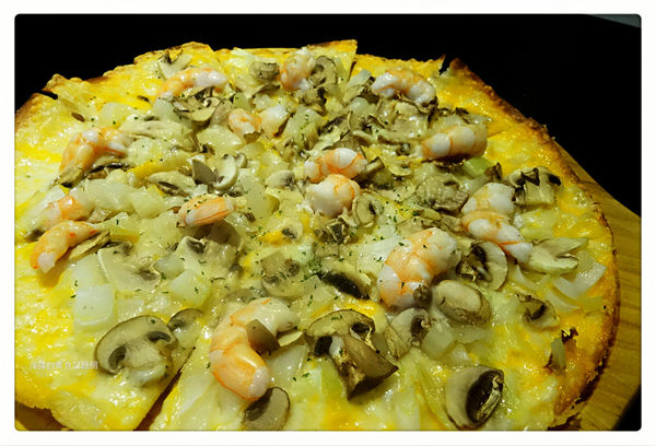 起司、蝦子、蘑菇、洋蔥,超完美組合
