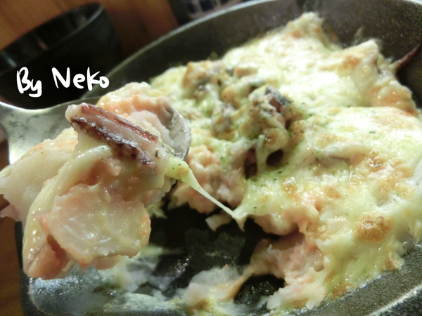 吃的到整片的洋芋~鋪上明太子美奶滋(應該)滿滿起司,裡面的魷魚腳怎麼好像是七味燒少了的那部份哈哈!