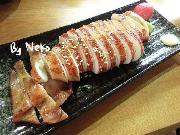 很肥嫩,沒有太多的調味吃的到原始的鮮甜味~沾著旁邊的蜂蜜芥末美奶滋也好吃!