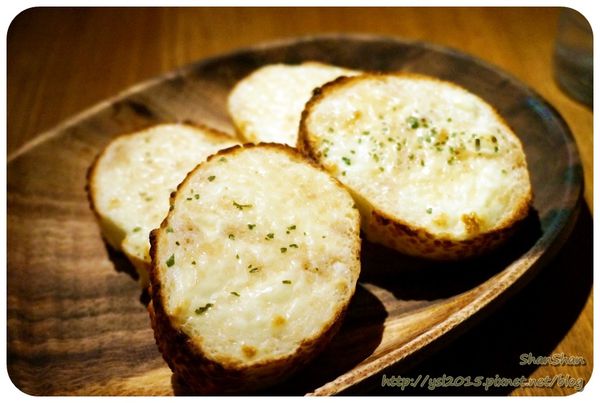 首先上的是起司酥烤麵包,正如其名,軟法外層酥脆、麵包體柔軟,上頭被一層起司滿滿覆蓋,好吃!