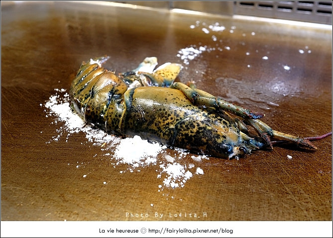 首先主廚先為我們呈上半隻波士頓龍蝦,先用鐵板的文火慢慢烘熱,接著再用噴槍火烤,是說認真的男人最帥氣,這句話完全在主廚身上可以看到:)