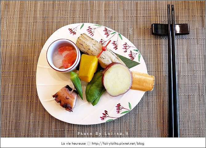 喜歡吃海鮮的我,看到龍蝦立馬眼晴一亮,完全沒有考慮就直接下訂它,從開胃小品一直到茶品甜點,總共有九道佳餚,符合懷石料理慢磨極緻,你可以好好細膩地嚼咀每道菜色的滋味與美色呦!