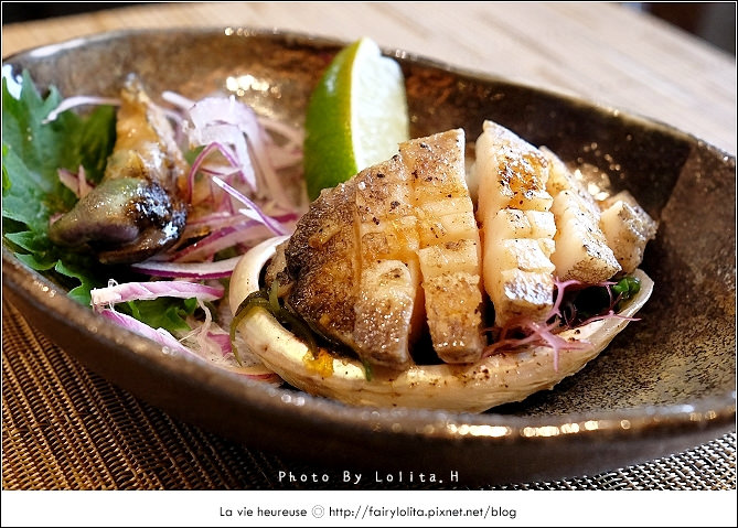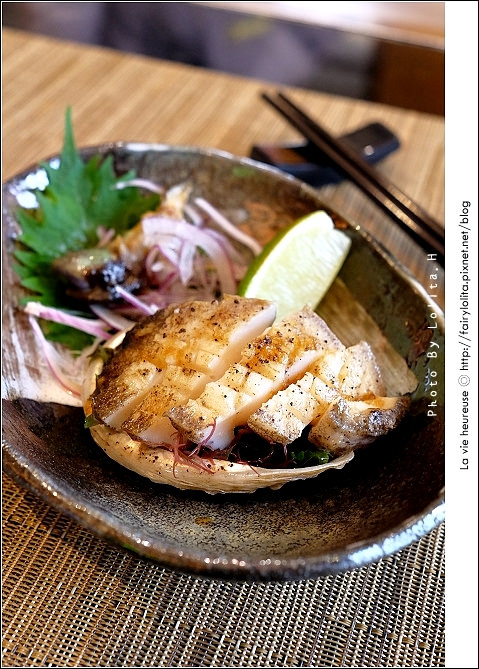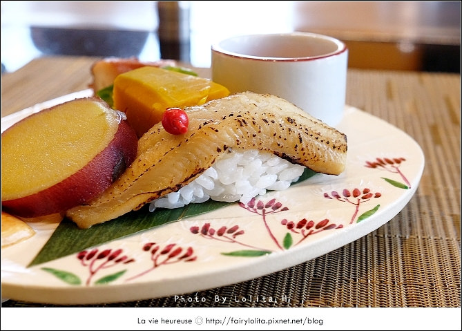 穴子魚握壽司肉質甘甜,而干貝使用有點像是孜然的山椒油,讓人驚喜的是地瓜好好吃呦!泡入檸檬片更能逼發它的甜味。