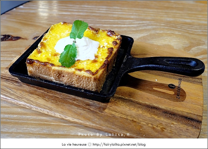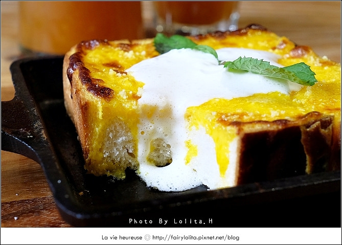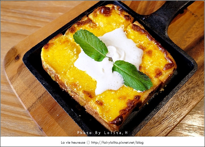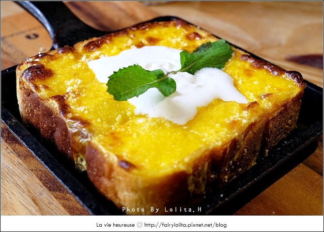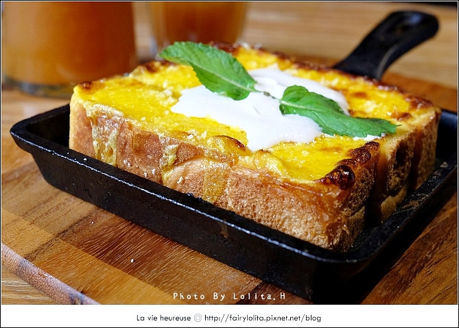 這道輕食似乎是C.C KISS的招牌,因為連樓下扛棒還特別用它做宣傳,將厚片吐司裏上香濃起司及帕瑪森乳酪粉,兩種cheese的組合還挺誘人的。