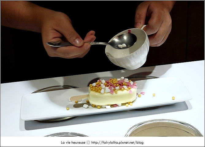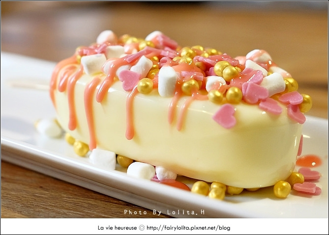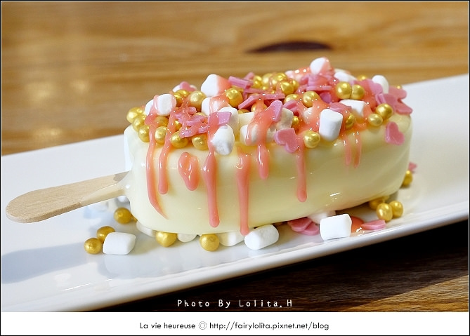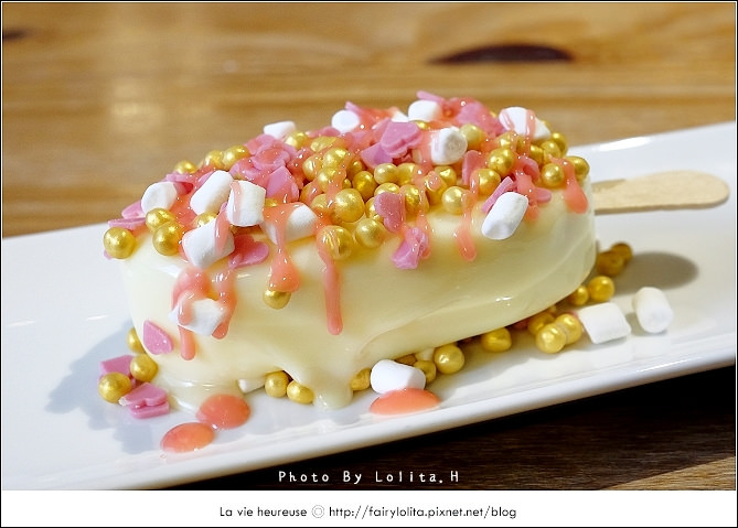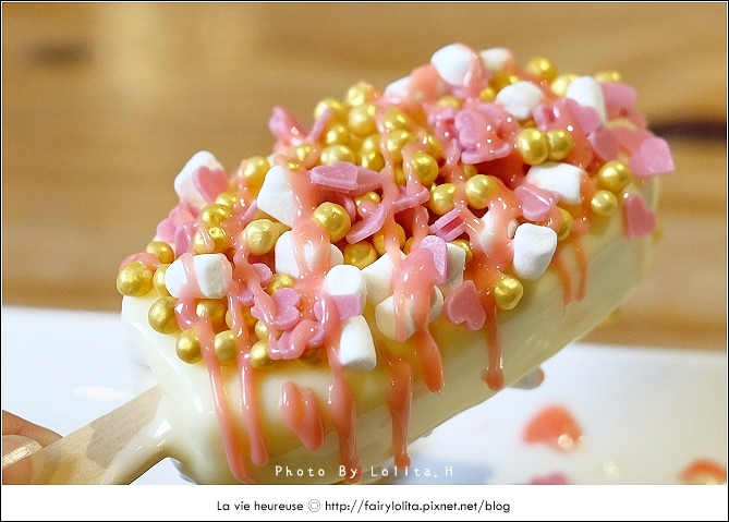 我挑了金色珠珠、粉紅愛心及綿花糖,三者與雪糕的結合整個好有懷春少女心,模樣感覺很浪漫阿!