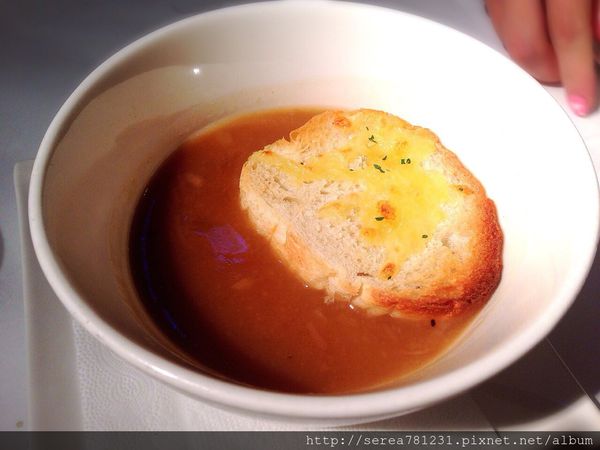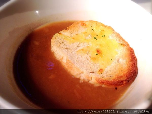 ↗洋蔥濃湯則是相當濃郁 洋蔥軟爛入味