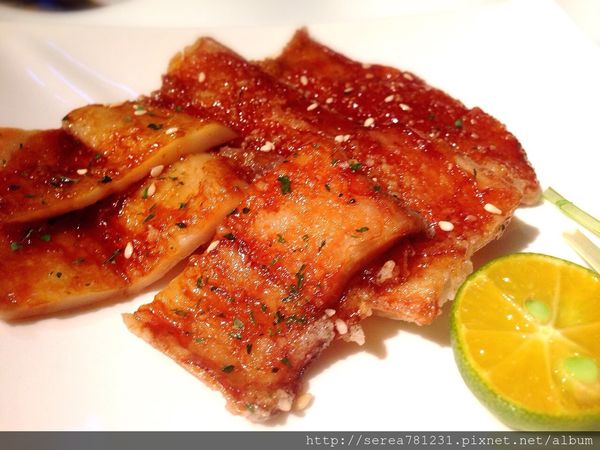 再擠上些許金桔撒上白芝麻及海苔粉還真跟鰻魚有幾分相似