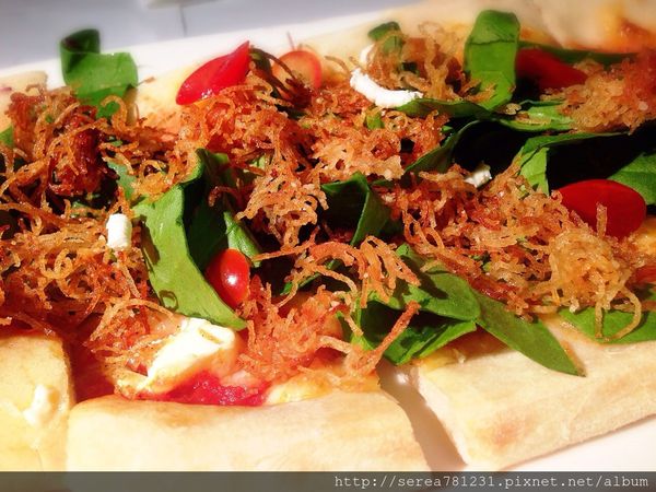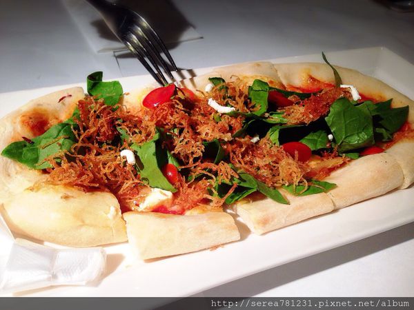 雖然沒有我們熟悉的肉類海鮮在上頭 但是嚐起來的味道一點也不輸肉類比薩