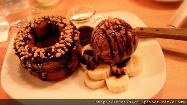 切片香蕉上搭配著濃郁的巧克力冰淇淋 巧克力的微甜微苦香氣充滿了整個口腔