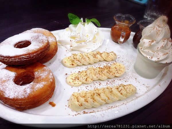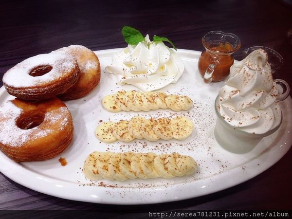 旁邊還附上了焦糖醬 我把它淋在甜甜圈上頭