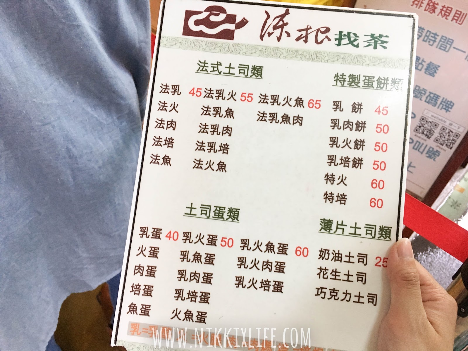 他們的餐牌要花點時間研究,因為他們全都用單字的,例如「法乳魚」即是鮪魚+乳酪+吐司,「乳肉餅」是乳酪+肉鬆+蛋餅。陳根找茶只有兩款食物就是吐司跟蛋餅,只是要挑材料,也沒有太難挑啦!