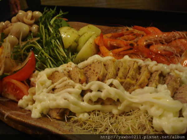這道料理已經處裡好 底下又放火爐想吃生一點的人即可可以吃想吃熟一點的等一下之後再食用