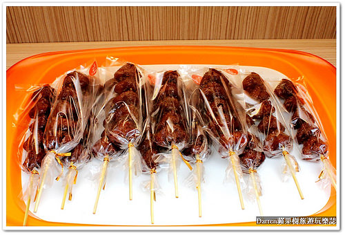 當天即食這個區塊還有這項絕對不能錯過的蜜汁七里香,包裝就好像冰糖葫蘆是店內超人氣品項唷