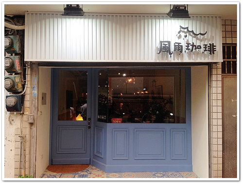 風雨珈琲藍色門面加上白色招牌帶點英式鄉村雜貨風格,在咖啡店的對面有機車停車場很方便