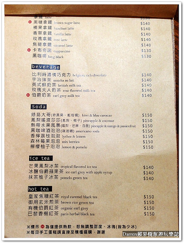 MENU,低消一杯飲品價位在130~150元,個人來了兩次都點他們家的蘇打,夏天特別喜歡氣泡的感覺