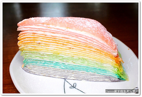 彩虹千層蛋糕 NT:100,一上桌第一件先餵相機吃!!哈哈