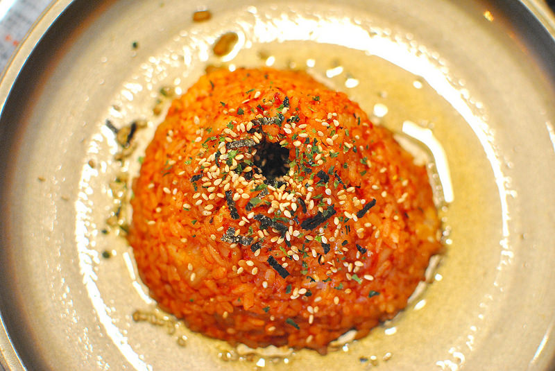 AgMA起司惡魔事先把米飯跟泡菜拌在一起入味,所以變成紅通通的米飯,如一座火山一般!