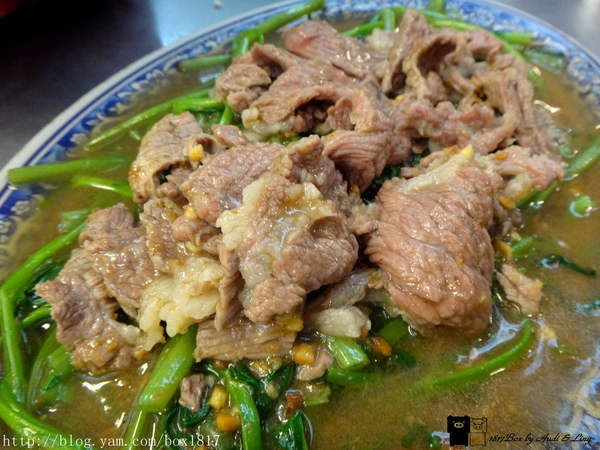 炒羊肉多了沙茶和蒜頭的香味,肉片也比瘦肉湯厚一點,