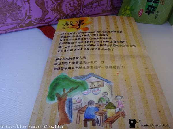 打開禮盒,裡面有二崙佳美旺來酥簡介,還有大富翁遊戲卡,