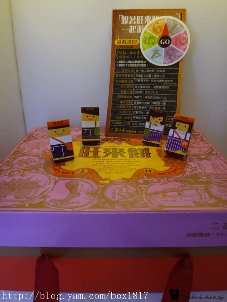 將所附的大富翁人物卡拆開組合後,和旺來餅外盒包裝結合,就能玩大富翁遊戲囉~