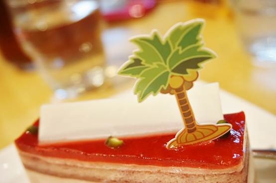 上頭的椰子樹甜點卡很可愛,很有熱帶風情。