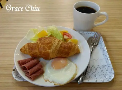 看菜單上早餐系列主要有供應五種餐點,其中生雞蛋拌飯朝食的大圖看起來很誘人,在日劇裡看了好幾次這樣的情景~把生雞蛋打在熱騰騰的飯上,加一點醬油拌一拌,歐~是多麼樸實簡單的好滋味吶!