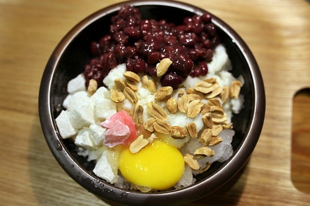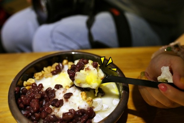 裡面還加了很香的花生, 還有小時候常吃的香蕉軟糖,蜜紅豆……