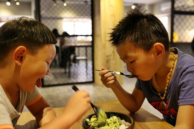 連兩個小孩都搶著吃,不理媽媽拍照了…T_T
