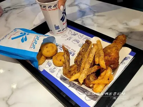 一上桌都已經幫我們切好了,剛烤好的雞真的非常燙手,貼心服務讓我們戴上手扒雞的透明手套就可以開吃啦!