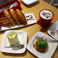 店內裝飾以綠色為主色調,還有黃色的海芋做裝飾