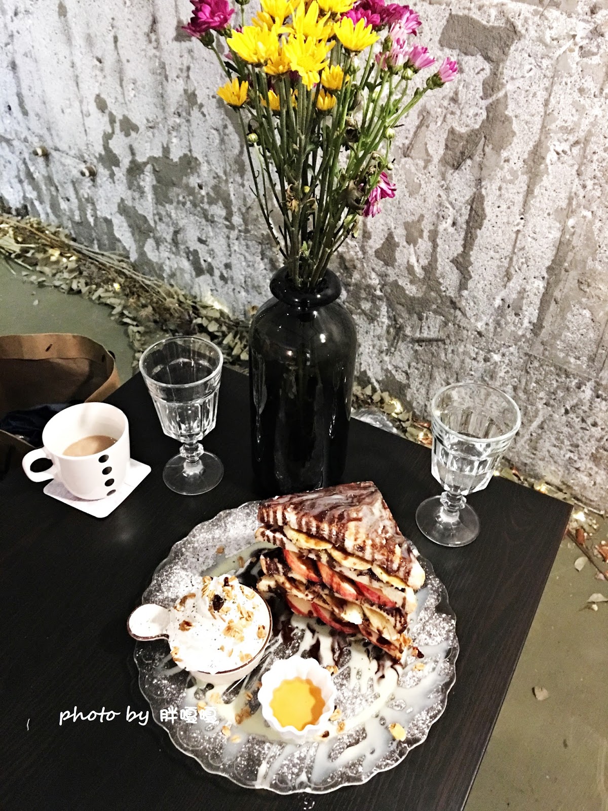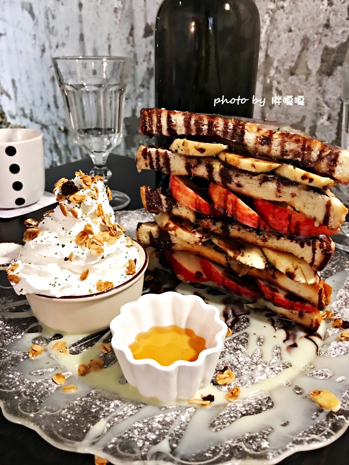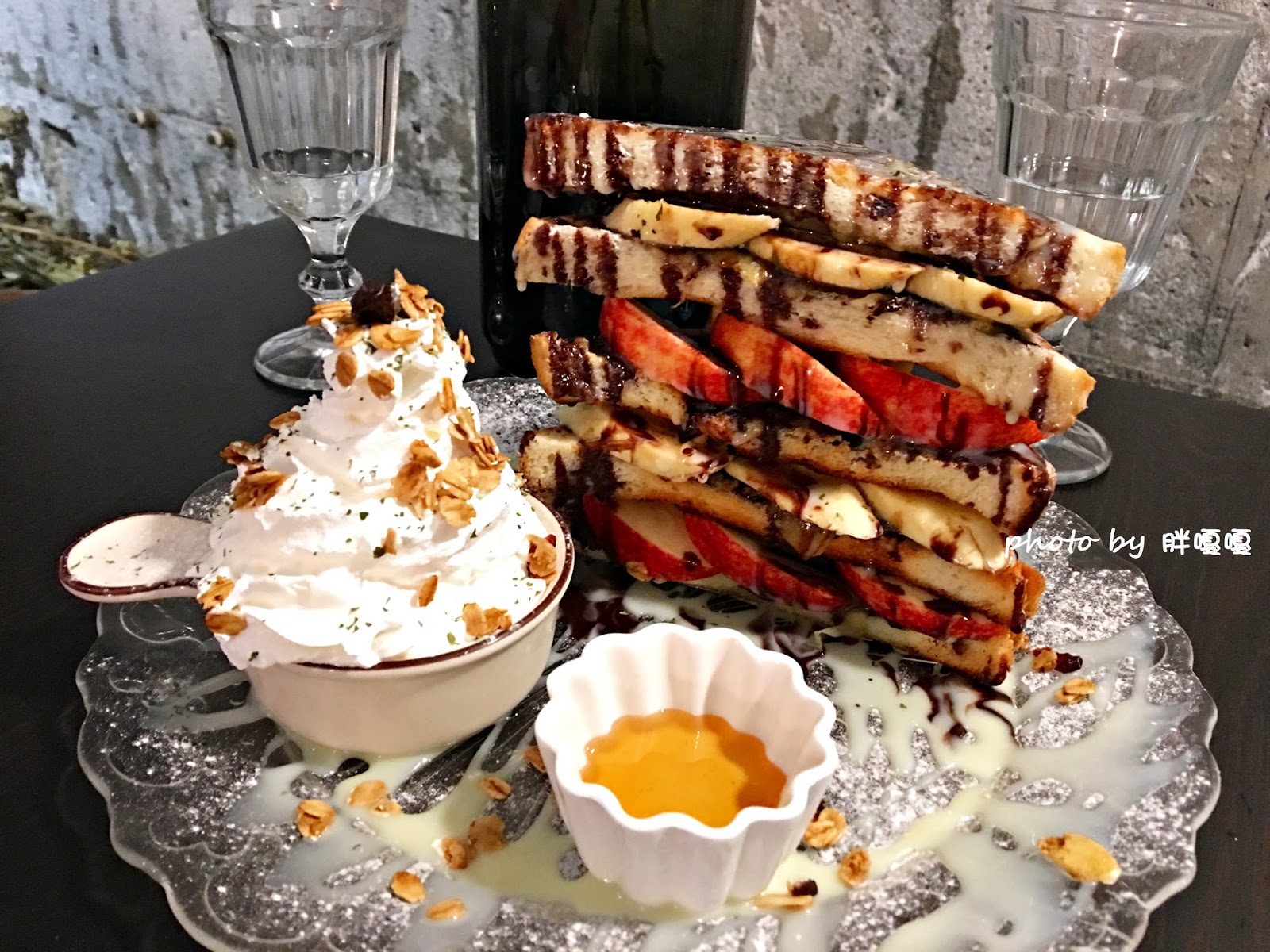 一旁還有蜂蜜和鮮奶油