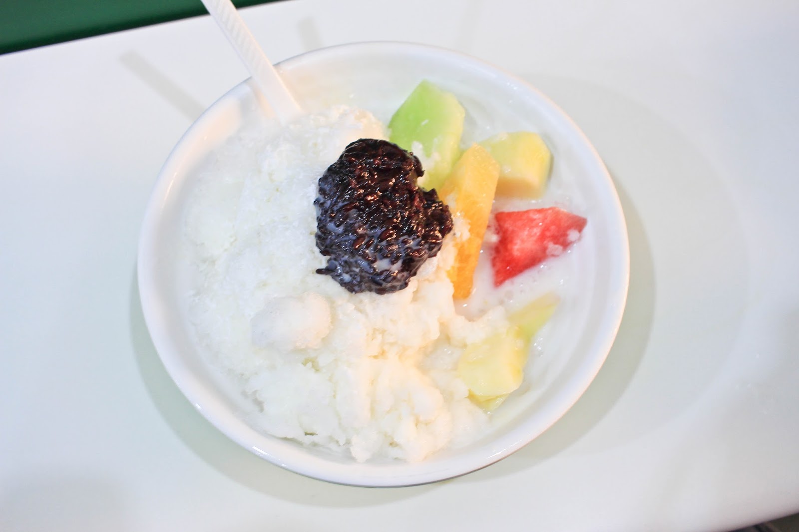 淋上誘人的煉乳與椰奶,底層則是滿滿的水果,有西瓜.蘋果.鳳梨.哈密瓜。