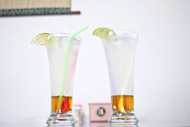 透明的杯子裝著晶瑩剔透的檸檬汁,