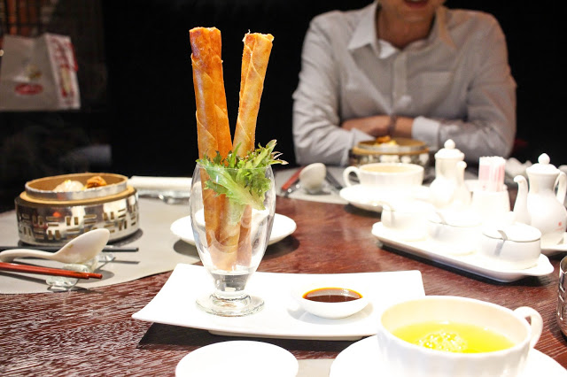 長春捲堆砌在晶瑩剔透的玻璃杯中,長條狀外觀似脆迪酥。