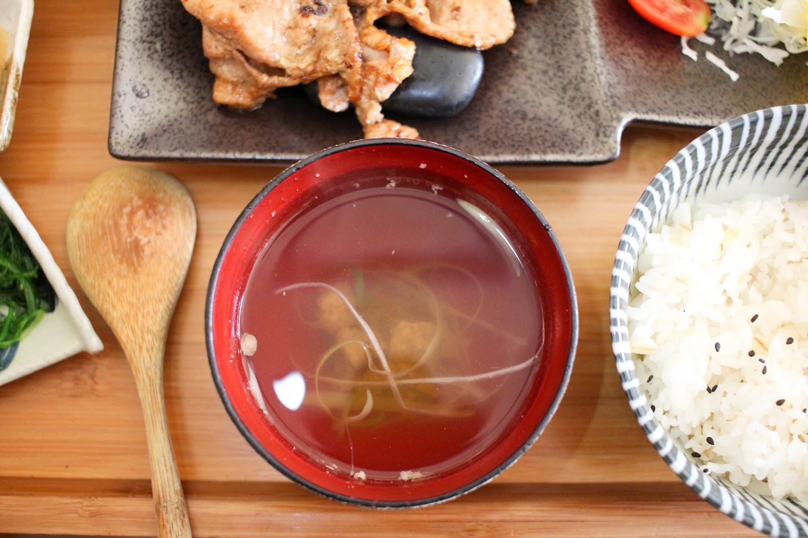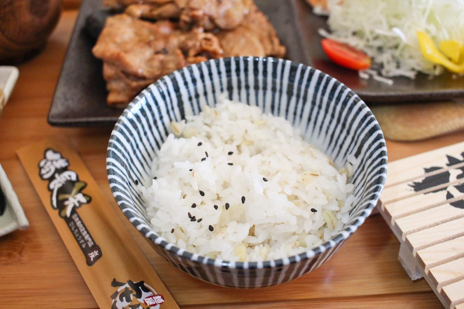 白飯上頭撒著些許黑芝麻。