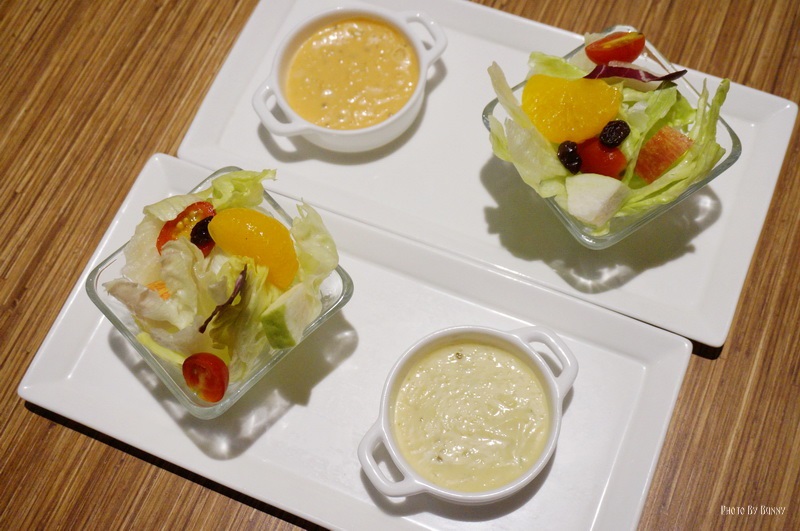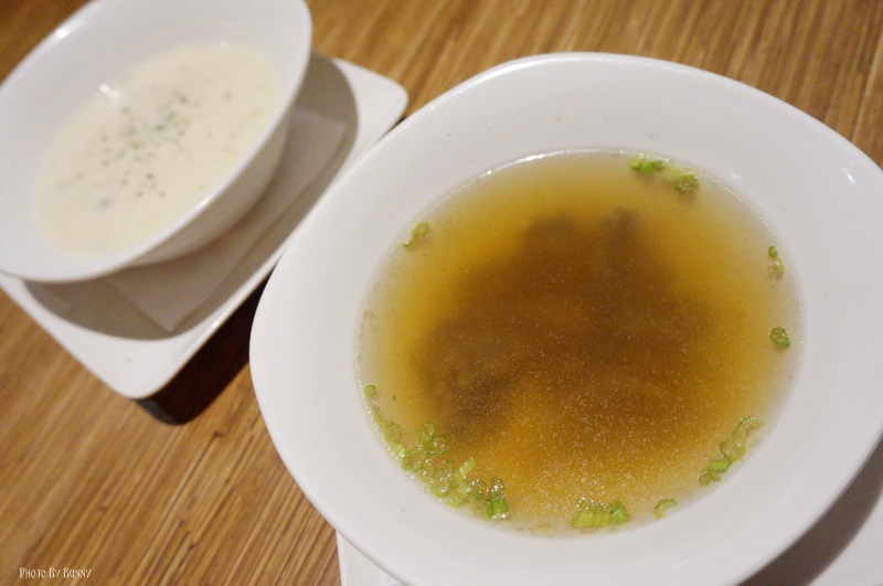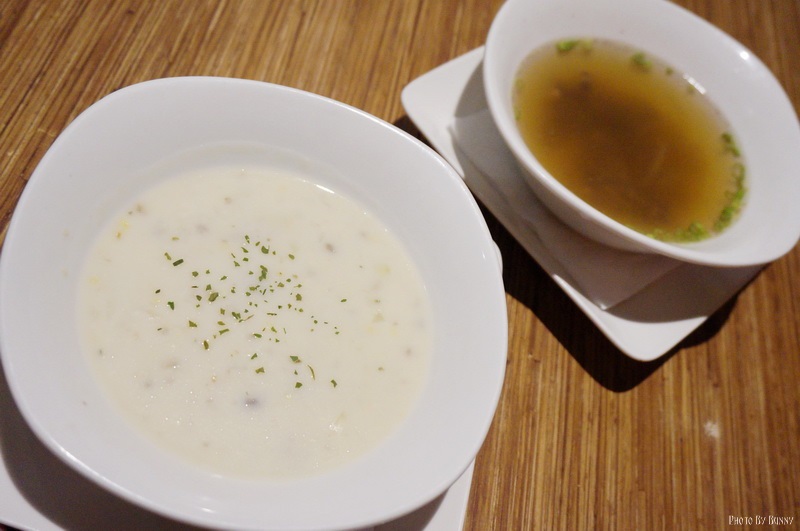 湯品部分為 奶油蘑菇濃湯 及 法式牛肉清湯