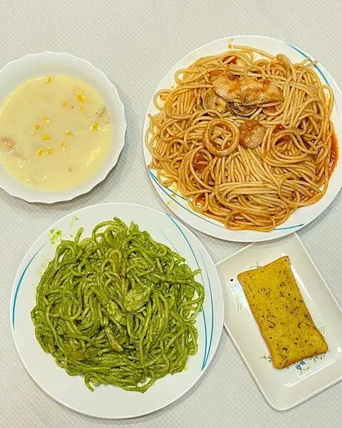 義大利麵口味基本的番茄、青醬、辣味、奶油都有